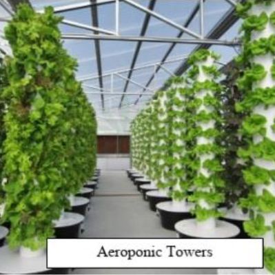 a vertical farming system that suspends plants, spraying their roots with a nutrient-rich mist instead of soil, maximizing space and water efficiency for growing herbs, vegetables, and flowers in small areas like urban homes or greenhouses, producing higher yields faster than traditional methods. These towers use a pump to deliver nutrients to the roots, allowing for controlled conditions and sustainable food production.